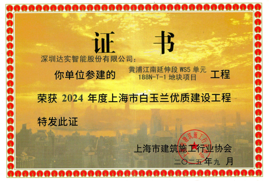 公司参建项目获评白玉兰奖既是对达实质量管理体系、技术创新能力和综合实力的权威认可,也有利于提升公司的市场信誉和品牌形象。