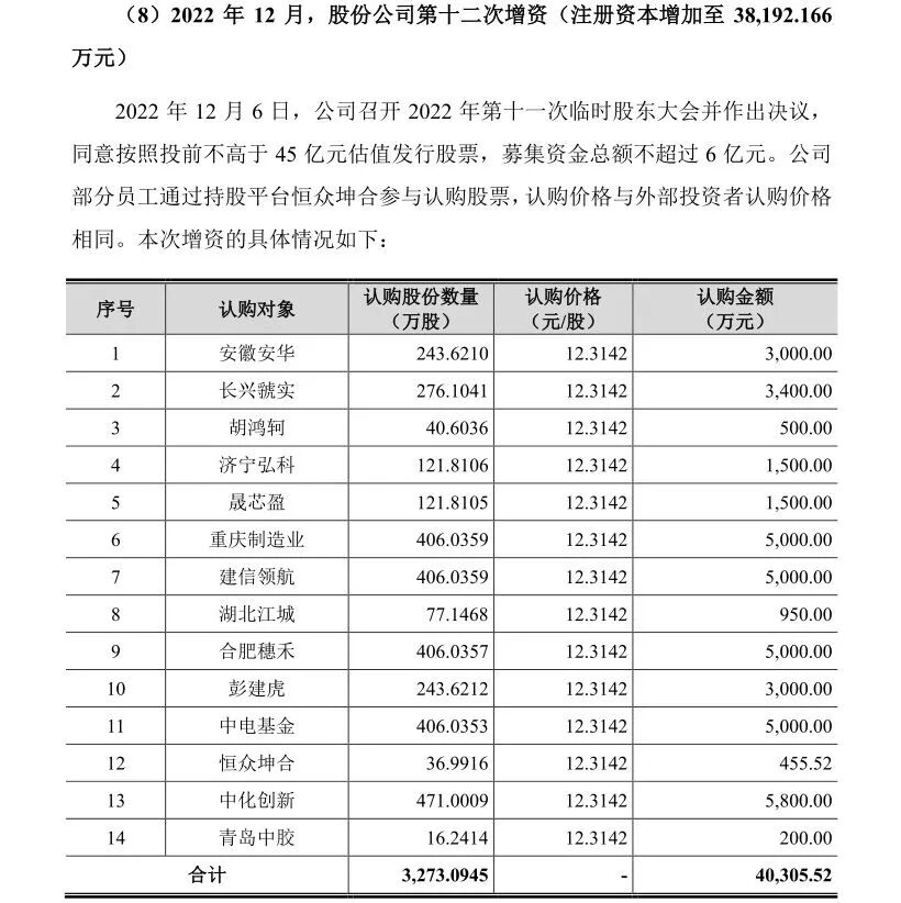 《恒坤新材的招股书》显示,2022年12月6日,恒坤新材召开股东大会并作出决议,同意按照投前不高于45亿元估值发行股票,募集资金总额不超过6亿元。其中,彭建虎认购243.62万股,认购价格12.31元/股,认购金额3000万元。