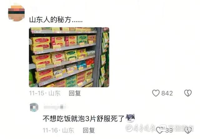在社交媒体上,“钙奶饼干”讨论热度居高不下。各种沉浸式试吃“钙奶饼干”的视频风靡网络平台,网友们也形成了“泡水派”和“泡奶派”两大吃法派系。“山东人没有一块钙奶饼干是白吃的”“这是山东人‘从没牙吃到没牙’的国民饼干”等相关话题,更是触发了一众山东人的童年回忆。
