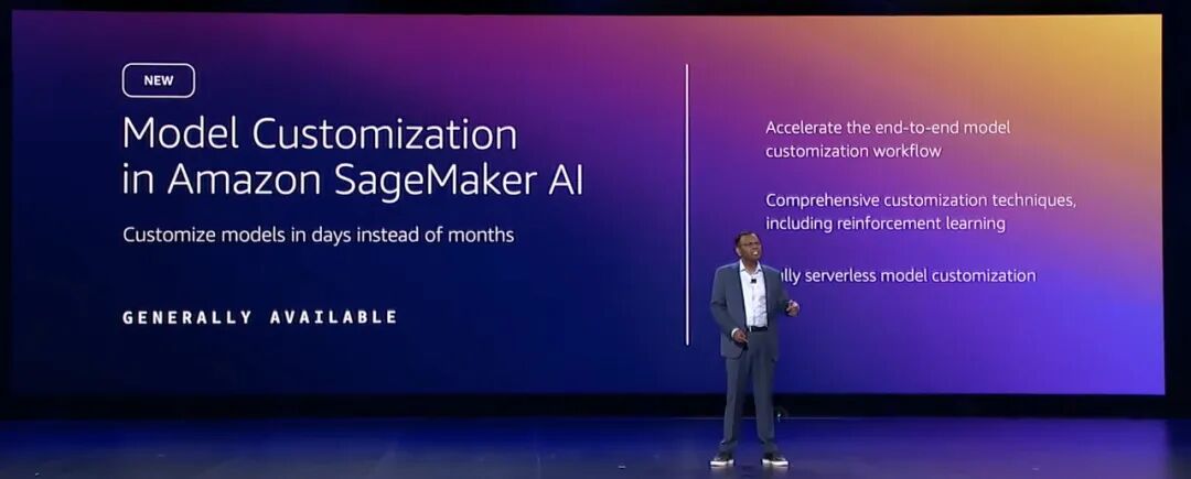 第三是数据。亚马逊云科技推出的全新服务 Amazon Nova Forge,提出了开放训练模型的概念。
