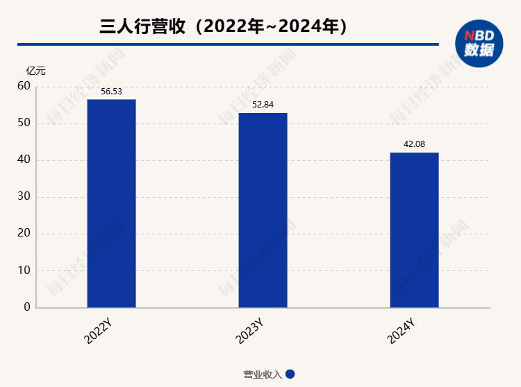 今年前三季度,业绩下行趋势仍未扭转。三人行实现营业收入25.69亿元,同比下降16.72%,归母净利润1.44亿元,同比下降20.48%。