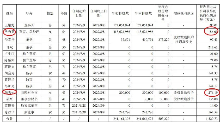 张雪娟去年薪酬为276.19万元,在所有高管中排第一。排第二的是董事总经理马秀慧,去年薪酬为186.00万元。另外,今年年初张雪娟持股公司20万股股票,今年没有关于张雪娟减持公告。但持股公告中未提及是否持有公司股票。