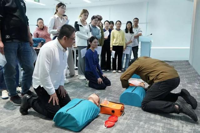 在活动起点,专业导师现场演示AED使用技巧,参与者们认真聆听、积极互动。现场实操环节,大家轮流在模拟人偶上练习心肺复苏,每一个规范动作的背后,都是一份对生命的珍视。