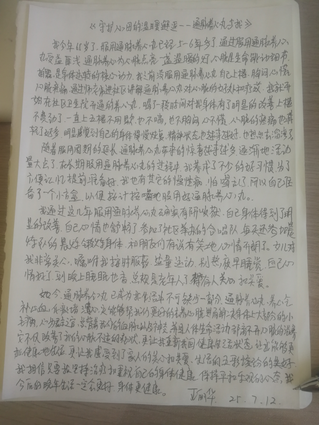 这些投稿不仅是对产品的肯定,更是一部生动的品牌发展史,展现了通脉养心丸上市60年来对千家万户心的守护。
