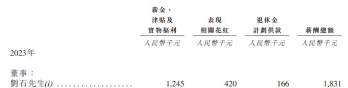 2022年至2024年,刘石薪酬分别为152.8万元、183.1万元及195.7万元,其薪酬连年上涨。