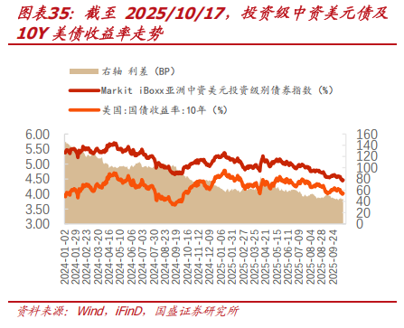第四阶段(9月25日至今)央行重启买债,利率震荡。10月9日中方以稀土管制等反制,特朗普威胁对华加征100%关税,风险偏好骤降。10月27日央行行长潘功胜称将恢复国债买卖,稳定债市预期。利率下行后维持震荡,信用利差也随之压缩。