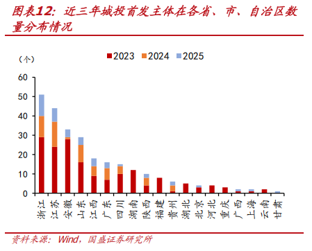 总量上看,城投债首发主体数量已连续三年下滑,尤其是过往作为新增基石的区县城投缩量最为明显,地市级供给保持稳定或小幅下降,省级主体在今年开始出现首发。在“退名单”和隐债清零的政策下,不具备发债资格的区县及弱资质平台或将陆续退出市场,发债融资权限呈现上收趋势,2026年总供给恐难以形成明显反弹。区域层面,新增供给将愈发集中于浙江、江苏、广东、山东等东部沿海省份,以及安徽、江西等部分中部优势省份。