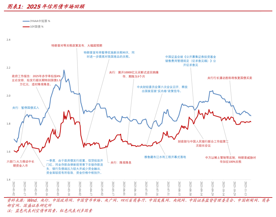2025年,信用债整体跟随利率节奏变化,信用利率化持续。大致可以划分为几个阶段: