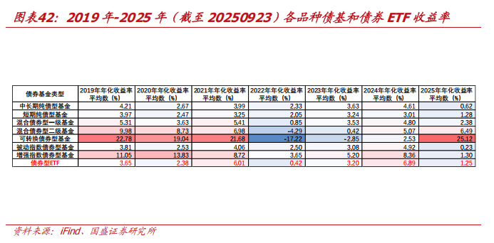 截至2025年9月25日,存续债券ETF合计53只,包括16只利率债ETF、35只信用债ETF和2只可转债ETF。存量债券ETF品种相对齐全、久期选择相对多样,其中利率债ETF久期在1年~22年,信用债ETF久期在0.33~4.53年,品种方面还包括城投债ETF、科创债ETF、基准做市信用债ETF等,可满足投资人的基本配置需求。
