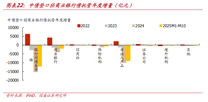 明年预计基金为主的非法人产品仍将是二永主要的需求力量,但增量有限。预计明年二永净融资会进一步下降,整体资产荒压力明显。这种情况下二永债收益率可能进一步下行,从配置价值来看对保险的吸引力可能继续减弱。在低利率缓解下,二永债票息保护低、波动相对较大,预计基金等非法人产品仍是重要的交易力量,但考虑到公募基金费率改革的影响,以及二永的净融资或减少,明年基金对二永的增持规模或有限。