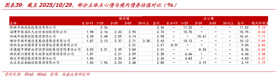 供给端方面,由于相对美元债的融资成本优势以及政策的支持,点心债近几年呈现放量的趋势,后续产品结构会更加丰富,优质金融债、产业债、绿债在监管支持下有望扩容。需求端方面,债券南向通扩容,跨境投资渠道拓宽,境内机构出海投资需求较旺盛,参与境外市场投资,可以有效缓解境内机构“资产荒”压力,利好点心债市场的二级表现。从当前的收益率来看,部分主体点心债相较境内债仍有较高的利差,性价比较高。下表列示了部分主体境内外利差的对比: