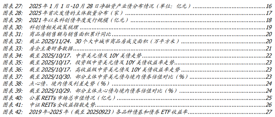 科创债以及科创ETF是今年信用市场的一大亮点。截止2025年11月25日,已累计发行科创债1.99万亿元,远超过2024年发行额1.22万亿元。同时,科创ETF密集发行,年内两批合计发行24只,发行规模超700亿元,与科创债形成正向联动。科创ETF的密集发行增加了信用债的配置力量,也一定程度上稳定了3季度的信用市场,使得信用债有更强的韧性。后续来看,伴随着政策着力发展新质生产力,科创债或将成为越来越重要的品种,对应产品的发展也将形成持续的投资机会。
