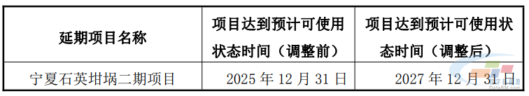 12月6日,欧晶科技发布公告称,对其募投项目“宁夏石英坩埚二期项目”达到预计可使用状态日期延期至2027 年12 月31 日。