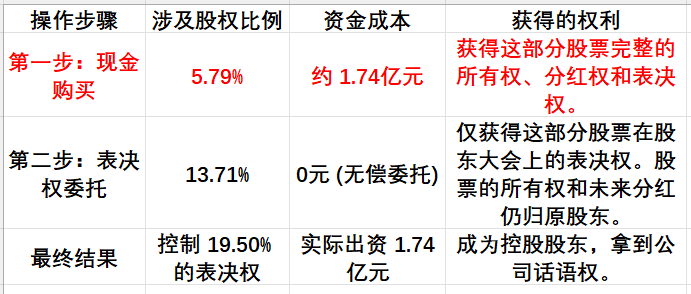 简单理解:这就好比你想控制一家公司,但钱不够把所有股份都买下来。于是你跟原来的大股东商量,你出一部分钱买下一小部分股份,同时他把剩下大部分股份的“投票权”免费借给你用一段时间。这样,你用少量的钱,就拿到了足够决定公司大事的表决权。