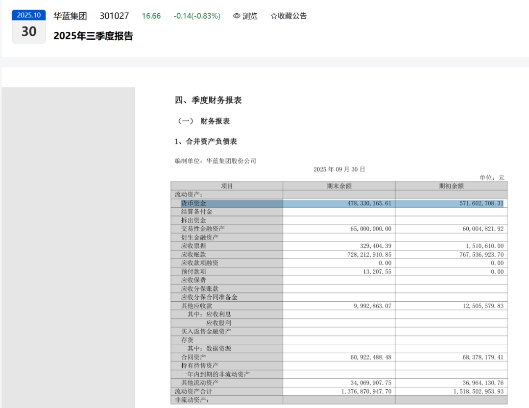 根据华蓝集团2025年第三季度报告,截至9月底,公司账上的货币资金为4.78亿元。