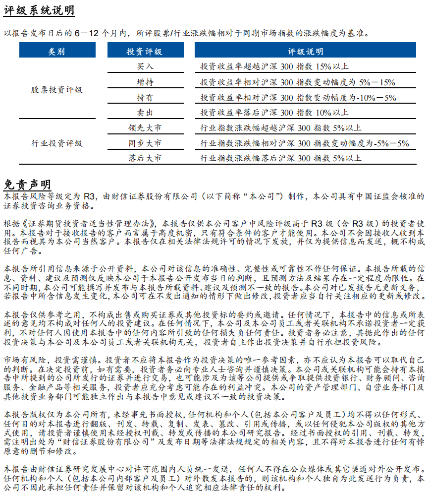 本订阅号不是财信证券研究报告的发布平台,所载内容均来自财信证券已正式发布的研究报告或对报告进行的跟踪与解读,订阅者若使用所载资料,有可能会因缺乏对完整报告的了解而对其中关键假设、评级、目标价等内容产生误解。提请订阅者参阅财信证券已发布的完整证券研究报告,仔细阅读其所附各项声明、信息披露事项及风险提示,关注相关的分析、预测能够成立的关键假设条件,关注投资评级和证券目标价格的预测时间周期,并准确理解投资评级的含义。
