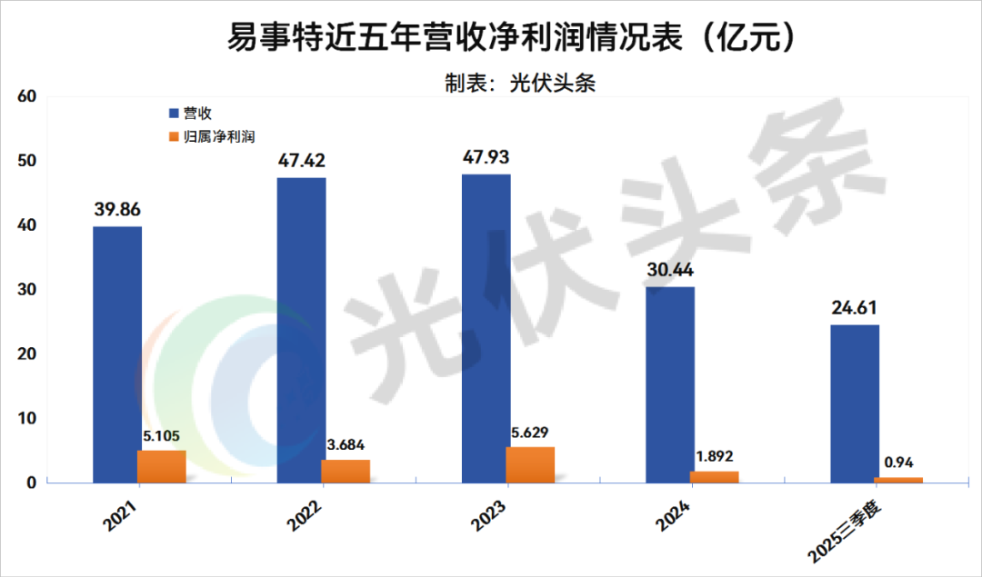 从财务表现来看,易事特在2023年营收、净利润达到近五年顶峰,此后有所下滑,但保有持续盈利能力。