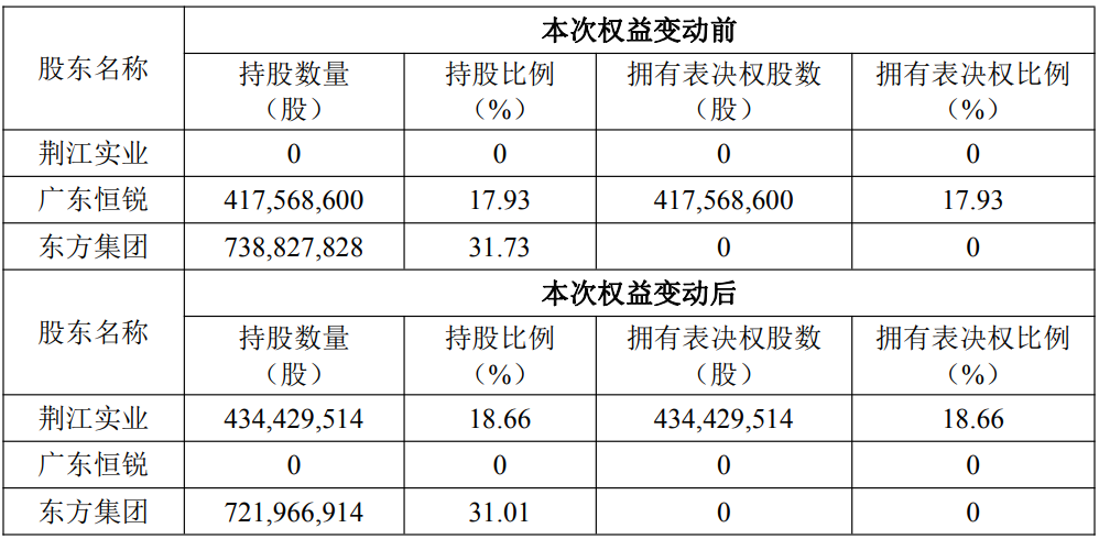 根据协议,荆江实业拟以24.37亿元总价受让易事特18.66%股份,原控股股东东方集团不可撤销地放弃其持有的上市公司全部股份(721,966,914 股,占公司总股本的31.01%)的表决权。荆江实业因此成为易事特的控股股东。