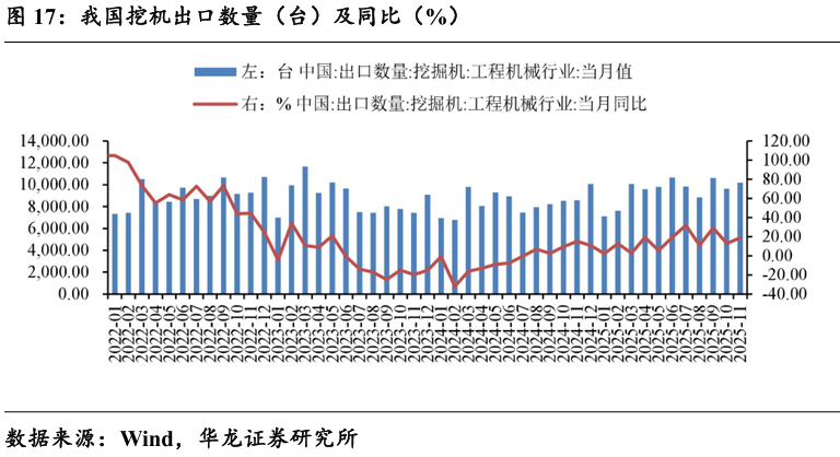 2025年11月,我国挖机出口10185台,同比增长18.8%。