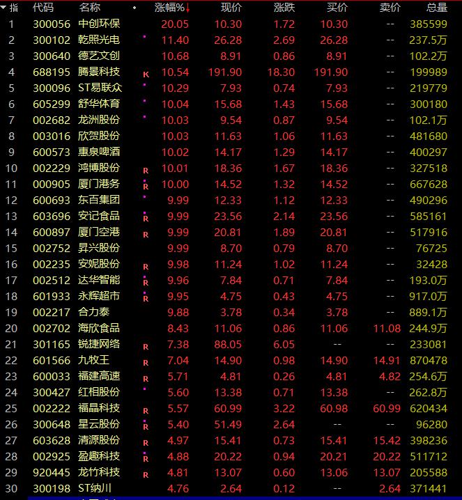 其中,海峡西岸概念板块持续活跃,26股涨幅超5%,中创环保、舒华体育等15股涨停。前一交易日,该板块22股涨停。