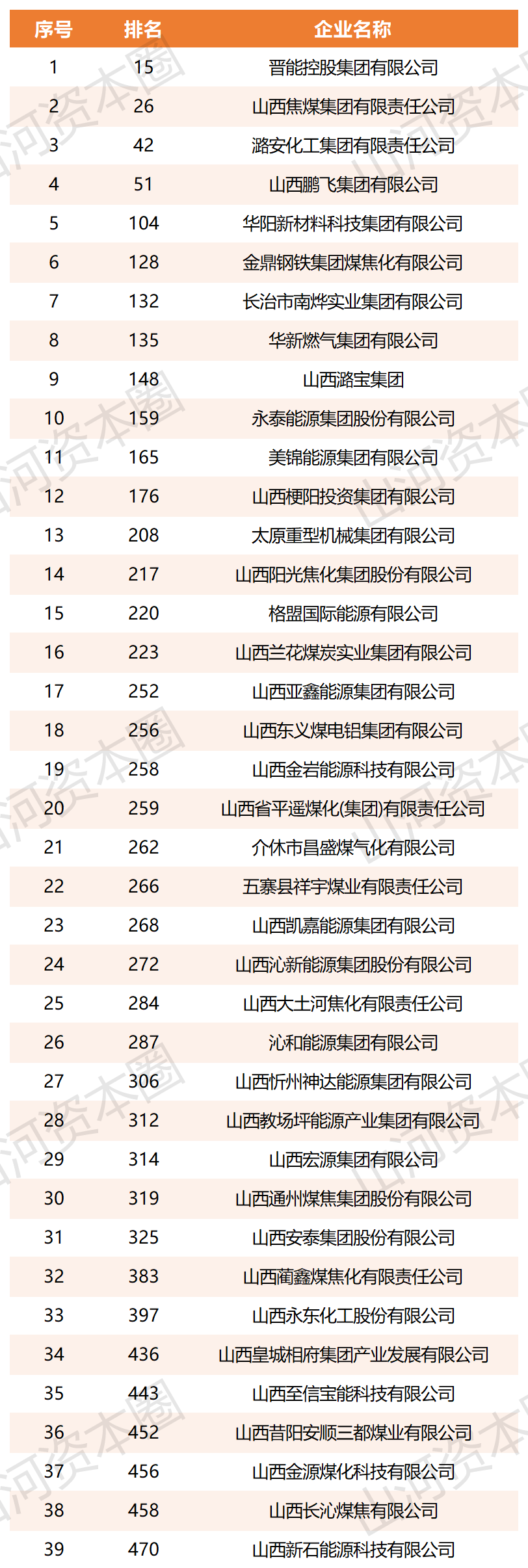 2025中国能源企业500强榜单山西上榜企业