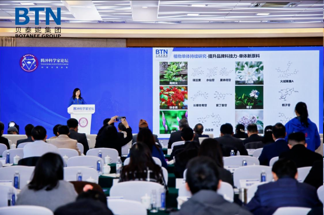 12月7日,云南贝泰妮生物科技集团股份有限公司亮相2025年腾冲科学家论坛系列活动南亚东南亚国际知识产权创新合作研讨会,贝泰妮资深研发总监、云南特色植物提取实验室创新原料首席科学家曲丽萍博士受邀出席,并以“云南特色植物新原料自主研发及产业化”为主题,重磅发布集团在植物新原料自主研发及产业化领域的系列成果,向国内外专家展示了贝泰妮集团在植物新原料研发领域的创新成果与实践路径。