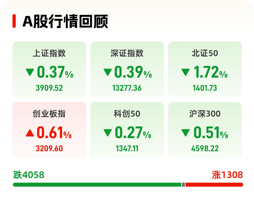 12月9日,三大指数涨跌不一,沪指、深成指震荡回落,创业板指冲高回落尾盘拉升。截至收盘,沪指跌0.37%,深成指跌0.39%,创业板指涨0.61%。