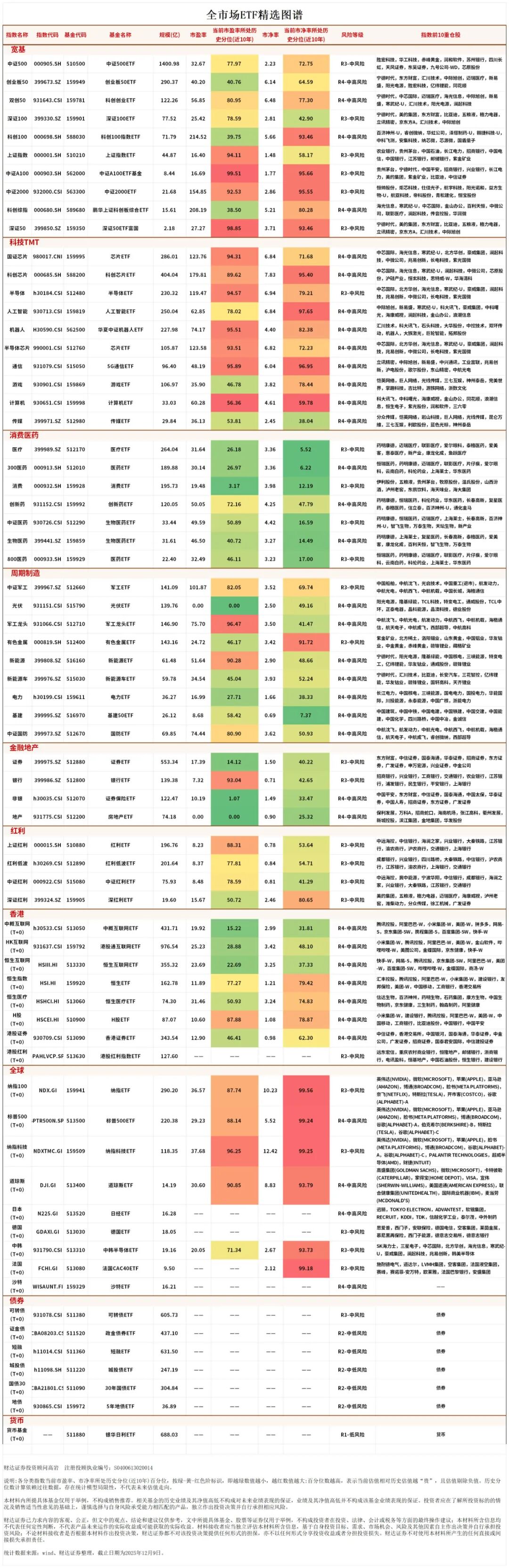全市场ETF精选统计数据来源:Wind、财达证券整理,截止日期为2025年12月9日