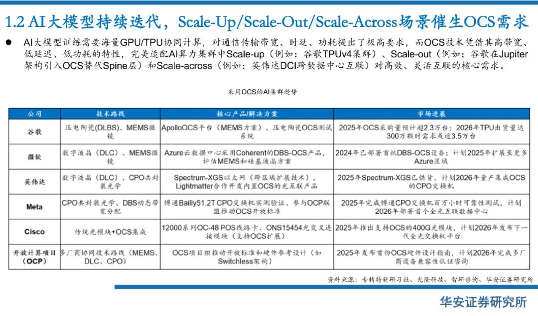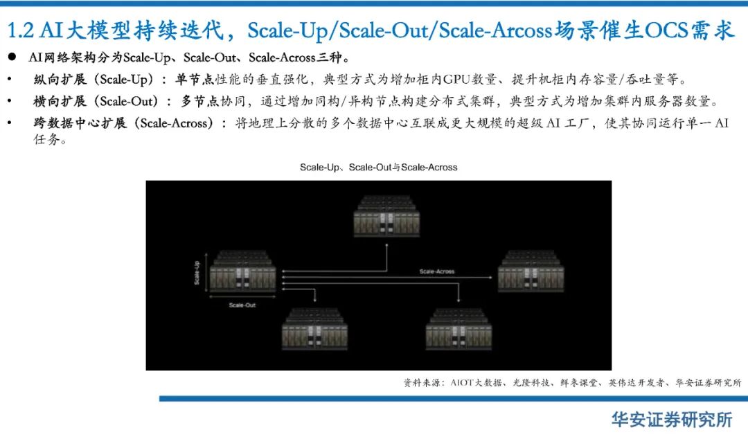 在 AI 算力集群中,OCS主要适配三大场景:谷歌 TPUv4 集群用它强化单节点性能(Scale-Up),Jupiter 架构靠它实现多节点协同(Scale-Out),英伟达 DCI 则通过它完成跨数据中心互联(Scale-Across)。