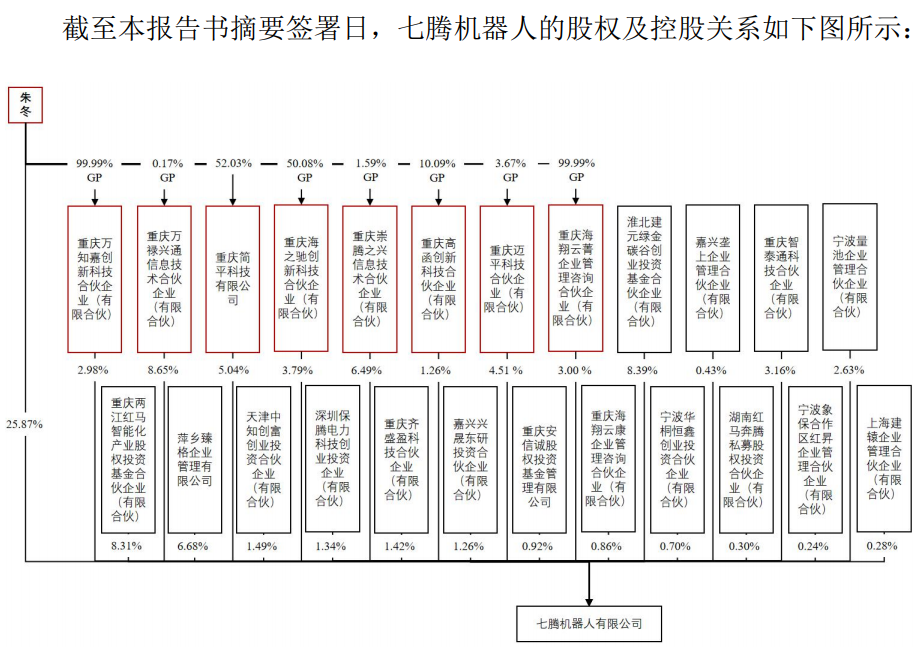 本次交易完成后,七腾机器人将拥有上市公司 44.99%的股份及该等股份对应的表决权,上市公司控股股东变更为“七腾机器人”,实际控制人变更为朱冬。