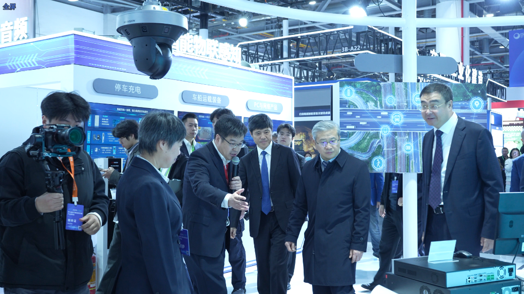 展会期间,交通运输部副部长王刚,浙江省委常委、常务副省长徐文光等领导一行到访海康威视展区,海康威视副总裁、浙江业务中心总裁陈继国重点介绍了海康威视智能物联技术体系,以及海康观澜大模型在交通领域的数智成果,同时分享了毫米波安检机、双光谱制冷型云台等产品的落地成果,获得领导一行的认可。