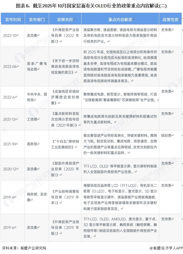 近年来,国务院、国家发展和改革委员会、科技部、工业和信息化部等各部门相继出台了多项支持我国新型显示产业中的液晶显示器行业的政策,为OLED行业发展提供了有力的支持和良好的环境。相关行业政策具体如下: