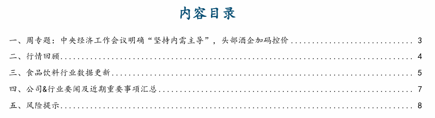 证券研究报告:《食品饮料周报:中央经济工作会议明确“坚持内需主导”,头部酒企加码控价》