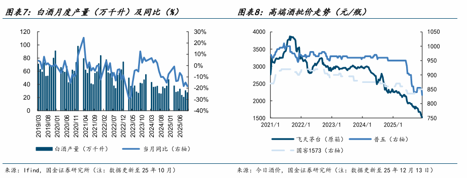 我们认为:1)头部酒企的表态已经较为明确,报表层面25Q3行业加速出清也已经落地,预计25Q4+26Q1窗口期行业层面仍会延续该出清节奏;2)目前渠道接货情绪相对较低,临近年末接货情绪有望回升,且消费端需求与批价会呈现价格效应、基于价格认知催生需求;3)目前渠道已经处于亏运营成本甚至亏毛利的状态,从产业经营范式的角度该状态持续性并不强。