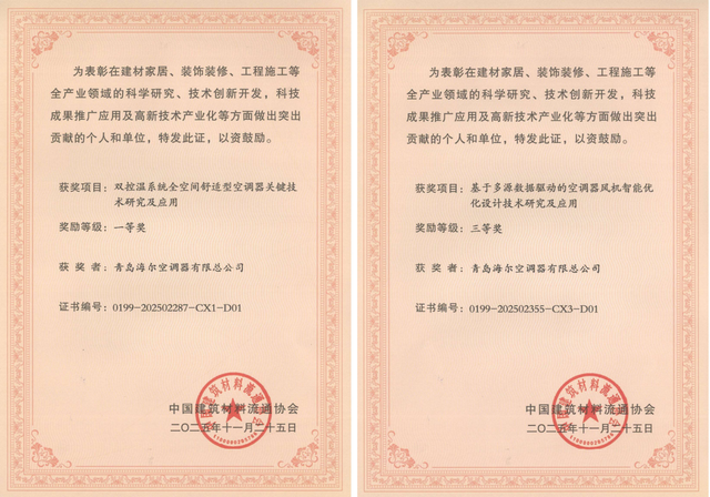 在2025年第34届全国建材与家居行业年会上,海尔空调凭借一项能让“一台空调同时吹出两种温度风”的技术,拿下了行业科学技术奖一等奖。