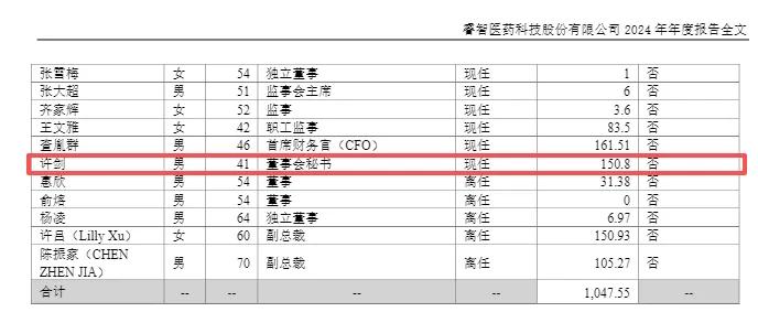 此外,睿智医药对董秘岗位的薪酬投入较为可观,前任董秘许剑去年的税前报酬总额为150.8万元,2022—2024年三年间的平均年薪约为154.08万元。