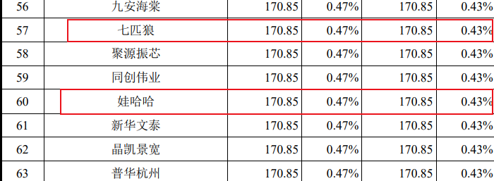 此外,在沐曦股份的股东名单中,还有娃哈哈、七匹狼等人们耳熟能详的企业名字。按照中午休盘股价计算,娃哈哈和七匹狼所持170.85万股份,对应的市值均涨至14亿。