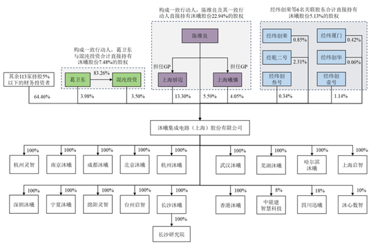 IPO前,上海骄迈直接持有公司13.30%股份,为沐曦第一大股东。鉴于上海骄迈、上海曦骥的执行事务合伙人均为董事长兼CEO陈维良,上海骄迈、上海曦骥以及陈维良构成一致行动人,合计持有公司22.94%股权;