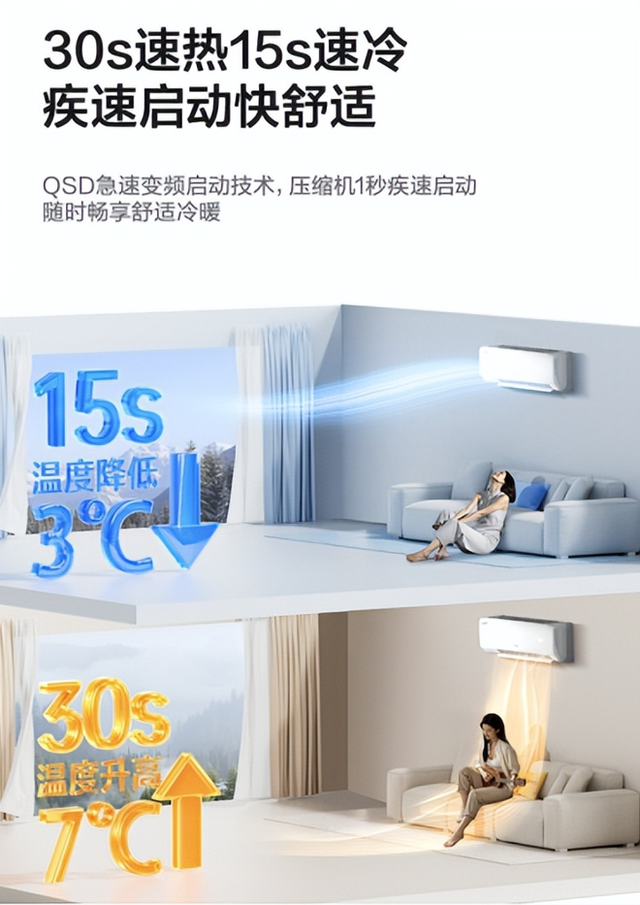慢速制冷制热的空调通常存在几个关键问题:传统定频空调需要频繁启停以维持温度,导致室温波动大且响应迟缓。变频技术不够先进,压缩机升频速度慢,无法快速输出强大冷热能力;整机热交换系统设计低效,风量不足或风道设计不合理,难以将冷热空气迅速送达房间各处。今天,我们集中推荐几款制冷制热速度快的空调,为冬季家居温暖提供硬核解决方案。