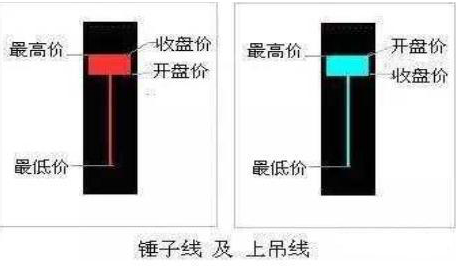 它们有两种颜色,可以是阳线也可以是阴线,也就是无论是涨或跌都可以形成锤子线或上吊线。