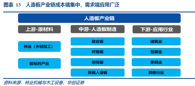 (一)人造板分胶合板、刨花板、纤维板三类,产业链需求端应用广泛