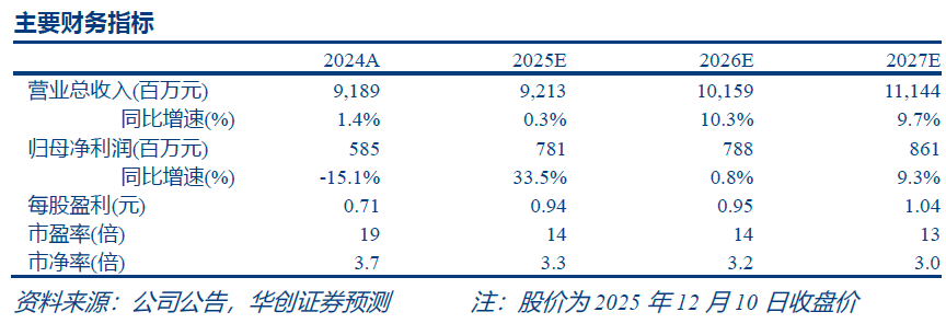 整体来看,预计公司2025-2027年营收分别为92.13/101.59/111.44亿元,同比增长0.3%/10.3%/9.7%;毛利率分别为18.1%/18.6%/18.2%;预计归母净利润分别为7.81/7.88/8.61亿元,同比分别增长33.5%/0.8%/9.3%。