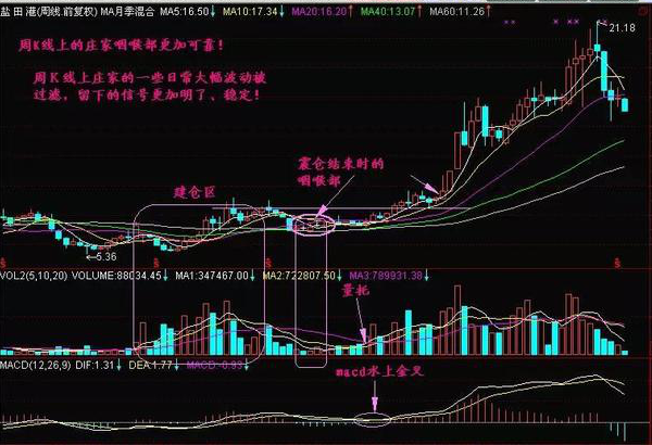 答:随着市场行为的逐步规范,那种一个季度的短庄大大减少了,取而代之的是建仓周期更长的庄股,这样的话我们应该运用周K线图来锁定庄股咽喉部!