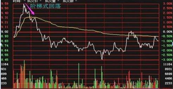 如上图所示,股指在此时候段快速冲高,其后开始震荡回落,以分时最高点开始计算,若接下来第二、三次均未突破当日最高点,即有调整的需求,从图开上判断,其结构呈现为“下降阶梯式”,一般第三次开始选择高抛出货。