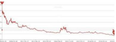 中国石油的市净率走势,从2008年3月24日的5.92,跌到了现在的0.68元。先再跟大家说一下市净率的概念:市净率(Price-to-Book Ratio,简称P/B PBR)指的是每股股价与每股净资产的比率。如果每股股价是一元,对于每股净资产是1元,那么市净率是1,1元买入一股,正好买入它的净资产值。如果每股股价是1元,对于每股净资产是2元,那么市净率是0.5,你1元买入一股,买入它的2元净资产,等于你花了1元买入了值2元的东西,所以当净资产低于1的时候,你都是占便宜的。相反,如果每股股价是一元,对于每股净资产是0.5元,那么市净率是2,你1元买入一股,买入它的0.5元净资产,等于你花了1元买入了值0.5元的东西,所以当净资产高于1的时候,你都是吃亏的。问题是很多好公司,我们很难等到净资产率低于1的,一般3可能也很好了。比如贵州茅台最新的净资产率是11,而历史最高超过30。哪怕是2013年的茅台,净资产率也超过3,那可是历史最低了。