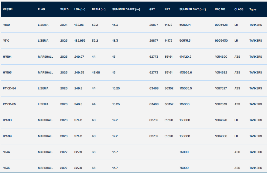其中,两艘MR(分别为2024年和2025年建造)来自与 Evalend Shipping 的转售交易;其余 8艘船则为 Cape Shipping 在 2023—2024年间直接订造的新造船项目,构成该计划的主体。