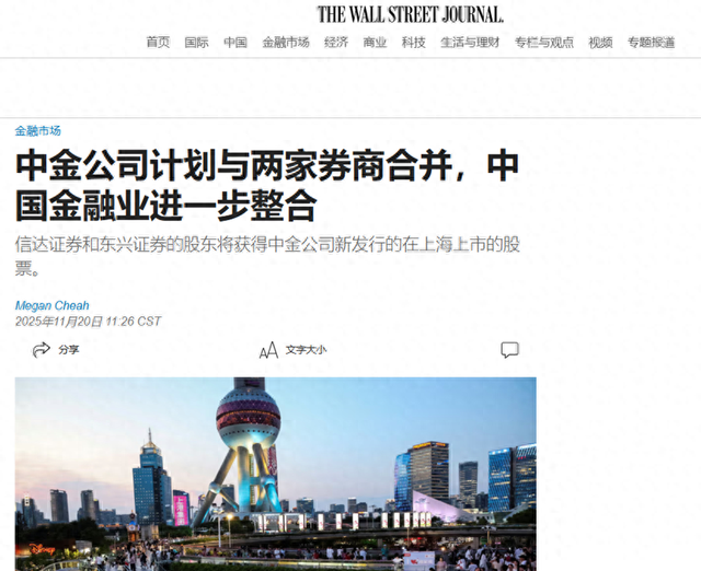 《华尔街日报》此前撰文提到,中国证监会在2024年3月表示,计划在未来五年内帮助10家证券公司引领行业发展,并希望到2035年打造两到三家具有全球影响力的券商。花旗集团分析师张卓佳和Calvin Leung在一份报告中表示,这三家总部位于北京的公司的三方合并,将会缔造一个“具有市场领先地位的巨型券商”。