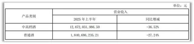 到了今年上半年,下行趋势来得更为猛烈,中高档酒收入同比减少36.52%;普通酒营收下滑了27.24%。