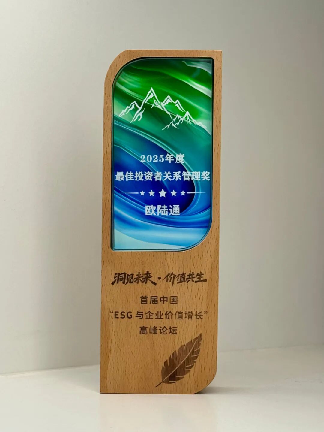 12月3日,由博涵财经、博涵可持续发展中心主办的首届中国“ESG与企业价值增长”高峰论坛暨上市公司ESG价值排行榜50强发布活动在深圳成功举办。凭借在投资者关系管理领域的卓越实践与显著成效,欧陆通从众多参评企业中脱颖而出,成功荣获“2025年度最佳投资者关系管理奖”。