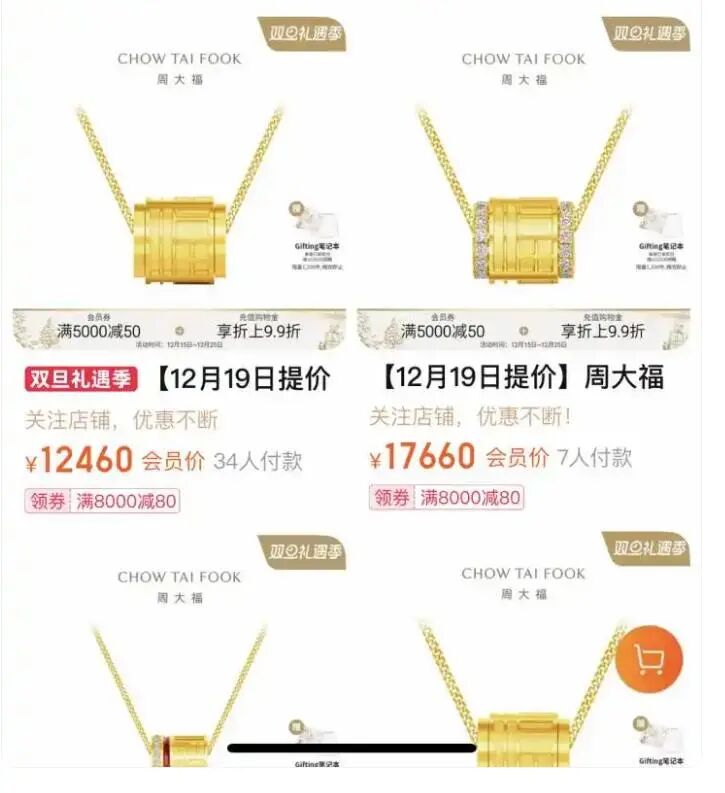周大福官方旗舰店12月17日在首页公告:受市场因素影响,部分商品12月19日将提价。